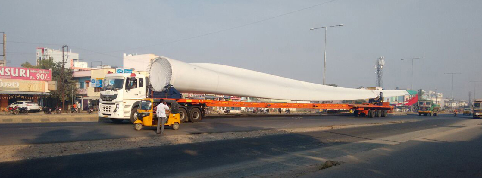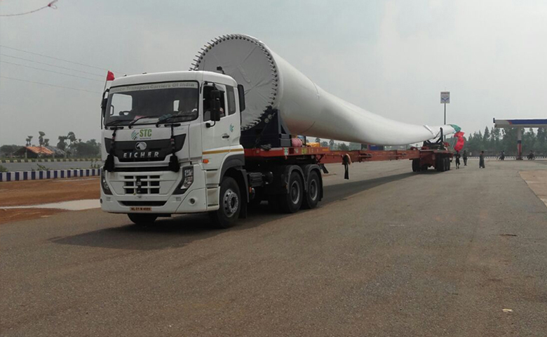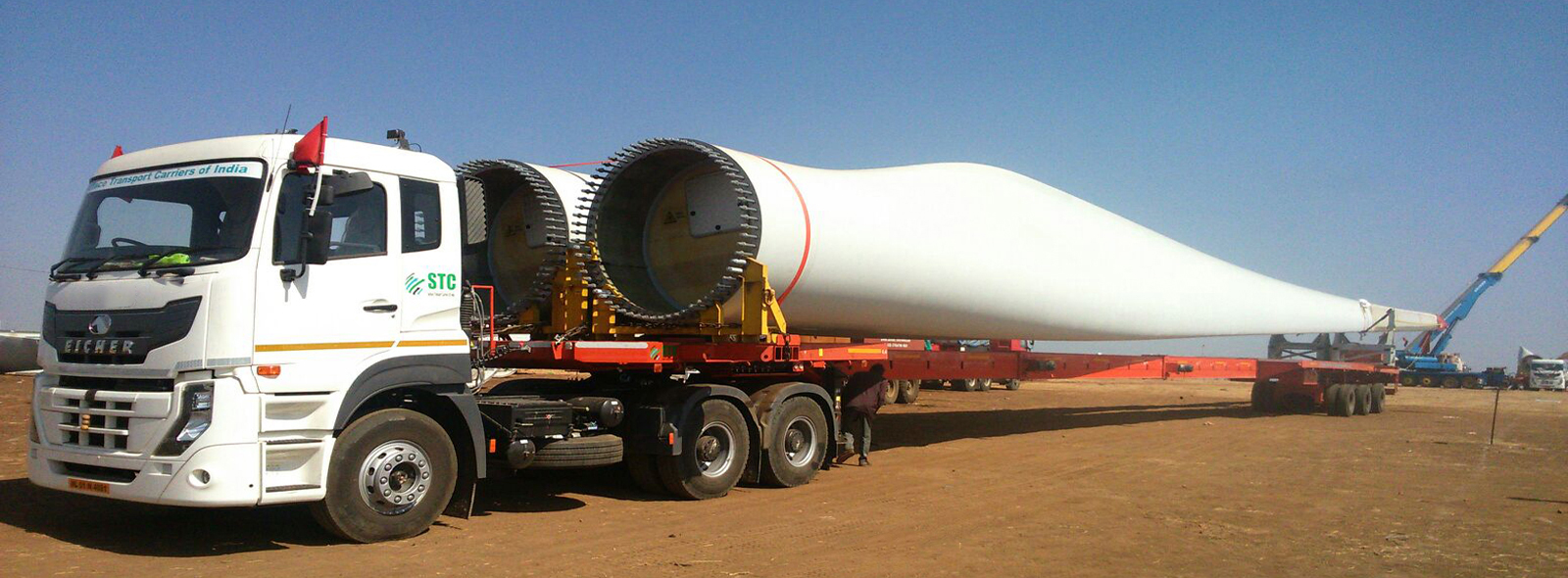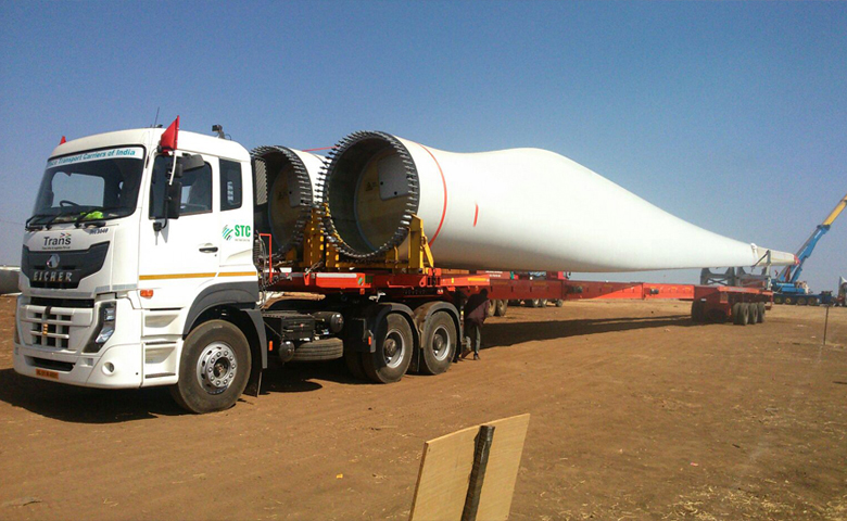STC’s Telescopic Trailers are made specially to transport maximum of two rotor blades length up to 47 meters on each Telescopic Trailer. STC has done more than 100 dual blade trips across India.