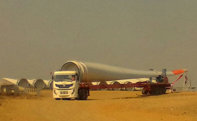 STC's Telescopic Trailer with 56 Meter Wind Turbine Rotor Blade.