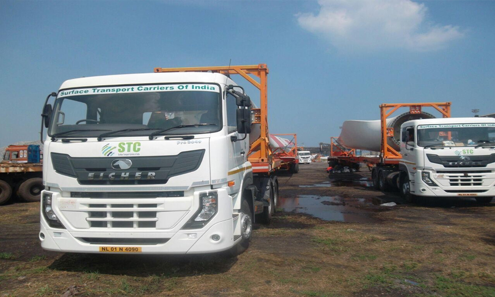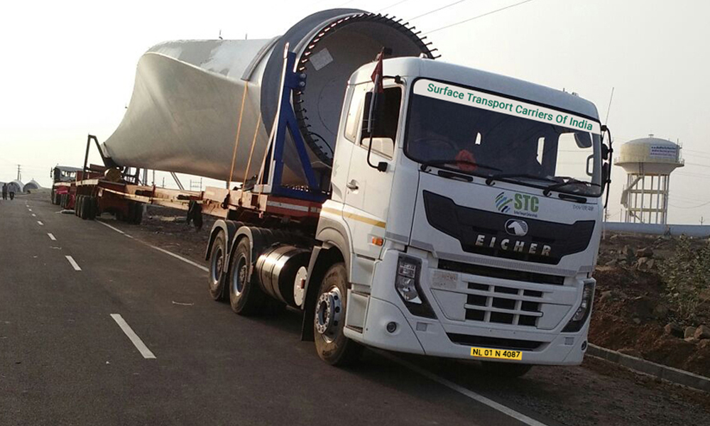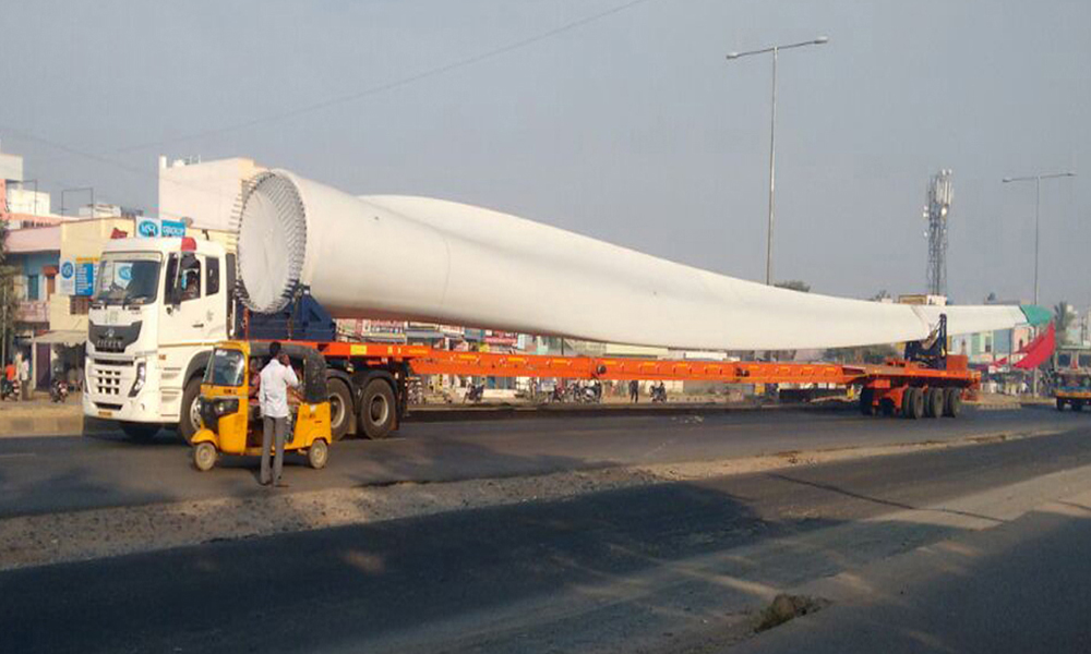 Rotor Blades transported in Telescopic Trailers.